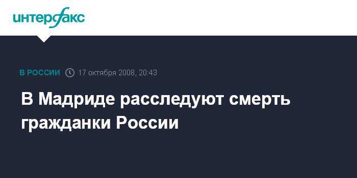 Москва. 17 октября. INTERFAX.RU - Национальная полиция Испании приступила к расследованию причин смерти 34-летней гражданки России Наталии Сульженко, которая была обнаружена с 20 ножевыми ранениями в четверг в ее квартире в одном из районов Мадрида, пишет в пятницу испанская газета Pais.