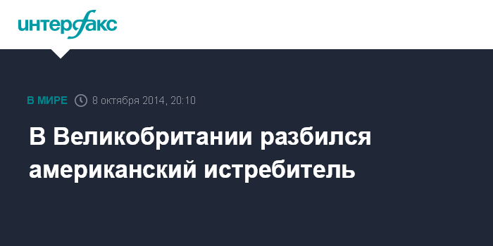 Москва. 8 октября. INTERFAX.RU - Американский истребитель F-15 потерпел крушение в графстве Линкольншир на востоке Соединенного Королевства, сообщает в среду газеты The Independent.