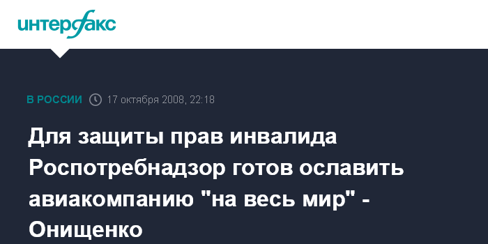 Для защиты прав инвалида Роспотребнадзор готов ославить авиакомпанию "на весь мир" - Онищенко