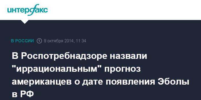 В четверг газета "Известия" сообщила, что вероятность появления в России первого зараженного лихорадкой Эбола к 24 октября составляет 1%, спустя еще месяц — это 5%. Соответствующие расчеты были сделаны в лаборатории моделирования биологических и социотехнических систем (MoBS) Северо-Восточного университета Бостона на основе динамики и специфики распространения заболевания.