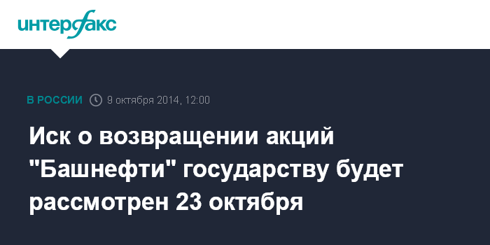 Иск о возвращении акций "Башнефти" государству будет рассмотрен 23 октября