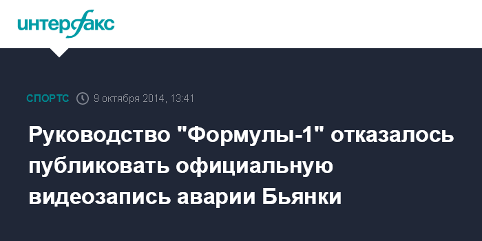 Руководство "Формулы-1" отказалось публиковать официальную видеозапись аварии Бьянки
