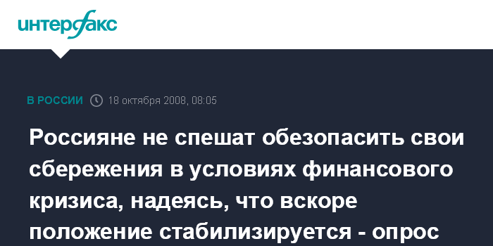 Россияне не спешат обезопасить свои сбережения в условиях финансового кризиса, надеясь, что вскоре положение стабилизируется - опрос