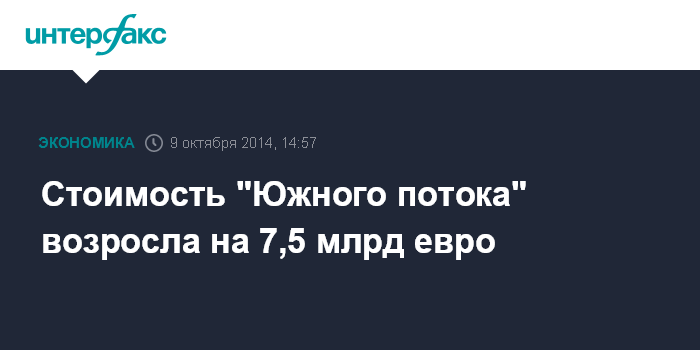 Москва. 9 октября. INTERFAX.RU - Стоимость морского участка газопровода "Южный поток" составляет 14 млрд евро, европейской части - 9,5 млрд евро, сообщил первый заместитель начальника финансово-экономического департамента "Газпрома" Александр Иванников.