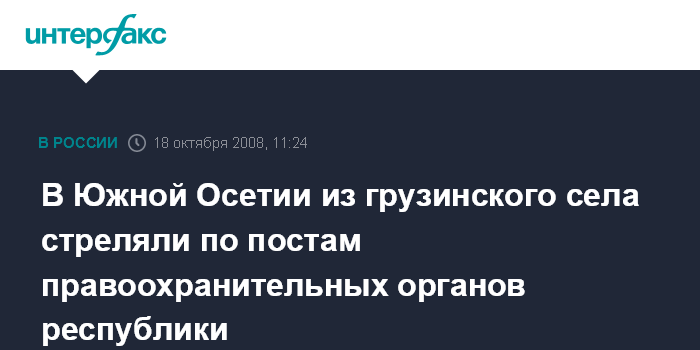 Москва. 18 октября. INTERFAX.RU - В субботу утром со стороны грузинского села Никози из пулеметов были обстреляны посты правоохранительных органов Южной Осетии, сообщил "Интерфаксу" в субботу и.о. министра внутренних дел республики Михаил Миндзаев.