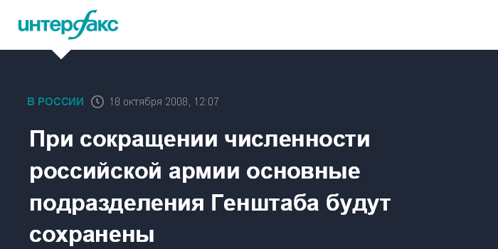 "Оптимизация будет не в плане того, что просто сократить, отрезать и урезать. А вот именно под новую армию мы создаем новый орган управления - Генеральный штаб. Его численность по боевым офицерам практически не изменится", - заявил Н.Макаров в субботу в интервью телеканалу "Россия".