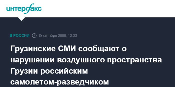 Грузинские СМИ сообщают о нарушении воздушного пространства Грузии российским самолетом-разведчиком