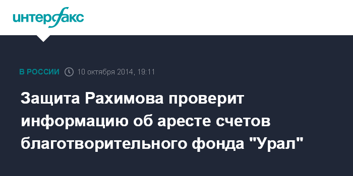 Защита Рахимова проверит информацию об аресте счетов благотворительного фонда "Урал"