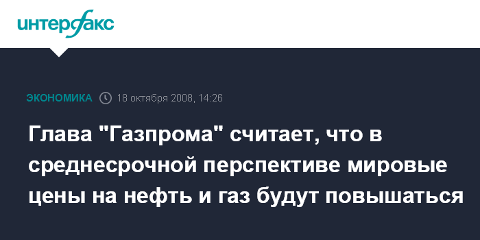 Москва. 18 октября. INTERFAX.RU - Руководитель "Газпрома" Алексей Миллер сомневается в том, что мировые цены на углеводородное сырье будут долго падать.