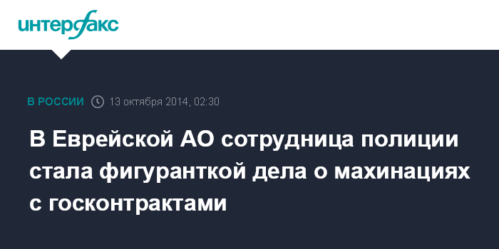 Москва. 13 октября. INTERFAX.RU - В Еврейской Автономной области представитель УМВД по региону подозревается в нарушении законов при заключении госконтрактов на ремонт административного здания с ущербом в 4,5 млн рублей, сообщает СУ СКР по ЕАО в понедельник.