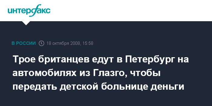 Трое британцев едут в Петербург на автомобилях из Глазго, чтобы передать детской больнице деньги