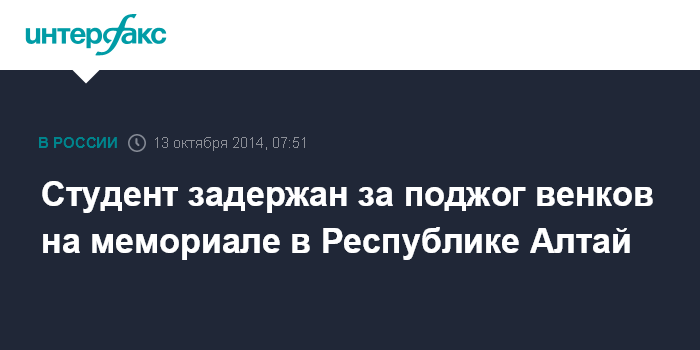 Студент задержан за поджог венков на мемориале в Республике Алтай