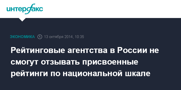 Рейтинговые агентства в России не смогут отзывать присвоенные рейтинги по национальной шкале