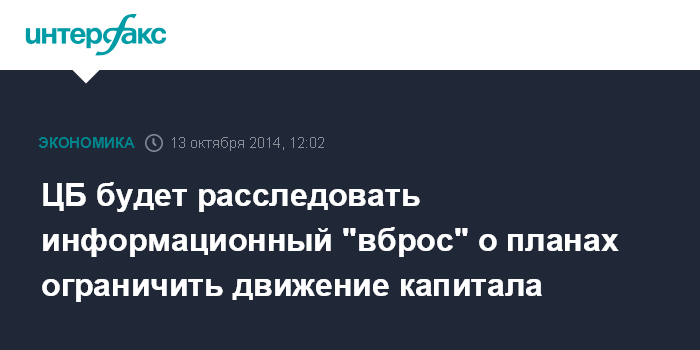 ЦБ будет расследовать информационный "вброс" о планах ограничить движение капитала