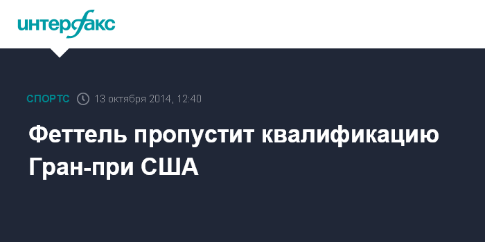 Москва. 13 октября. INTERFAX.RU - Пилот команды Red Bull Себастьян Феттель намерен пропустить квалификацию Гран-при США, который состоится в Остине.