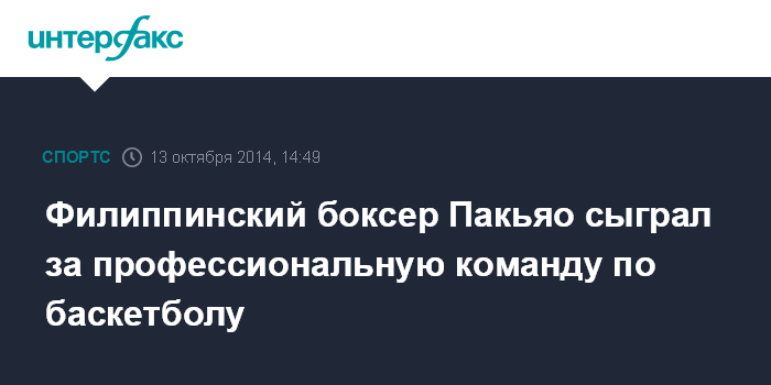 Москва. 13 октября. INTERFAX.RU - Чемпион мира по версии Всемирной боксерской организации (WBO) в полусреднем весе 35-летний филиппинец Мэнни Пакьяо принял участие в матче предсезонного турнира по баскетболу, сообщает USA Today.
