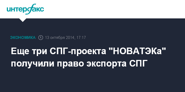 Москва. 13 октября. INTERFAX.RU - Еще три проекта "НОВАТЭКа" по сжижению газа - "Арктик СПГ 1", "Арктик СПГ 2", "Арктик СПГ 3" - получили право экспорта газа в сжиженном виде, соответствующее распоряжение подписал премьер-министр РФ Дмитрий Медведев.