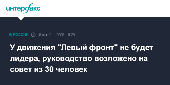 У движения "Левый фронт" не будет лидера, руководство возложено на совет из 30 человек