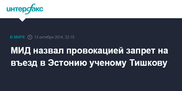 В комментарии отмечается, что "вызывает возмущение решение эстонских властей запретить въезд в страну видному российскому ученому, директору Института этнологии и антропологии им. Миклухо-Маклая Российской академии наук Тишкову, прибывшему в Таллин для участия во встрече международного медиа-клуба "Импрессум"".