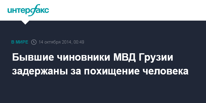 Москва. 14 октября. INTERFAX.RU - Бывшие высокопоставленные чиновники МВД Грузии задержаны по подозрению в похищении 19-летнего жителя Тбилиси Иосиба Гиорхелидзе и требовании выкупа за его освобождение в размере $300 тысяч, говорится в сообщении МВД, распространенном вечером в понедельник.