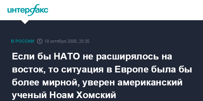 Если бы НАТО не расширялось на восток, то ситуация в Европе была бы более мирной, уверен американский ученый Ноам Хомский