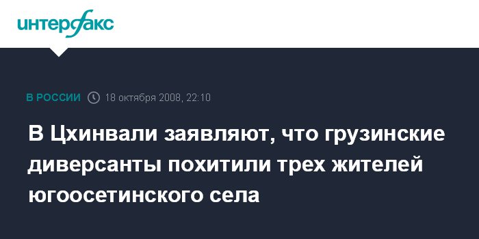 По информации, предоставленной "Интерфаксу" уполномоченным по правам человека при президенте Южной Осетии Давидом Санакоевым, всего с 8 октября, после вывода российских миротворцев из зоны безопасности, в Южной Осетии были похищены 11 человек.