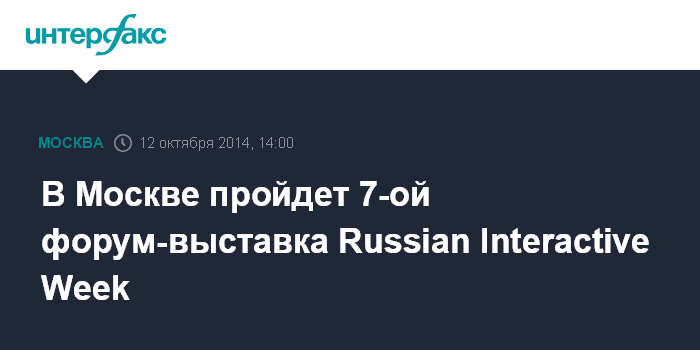 Москва. 14 октября. INTERFAX.RU - 12-14 ноября 2014 в Москве в Экспоцентре на Красной Пресне пройдет 7-ой форум-выставка Russian Interactive Week (RIW 2014).