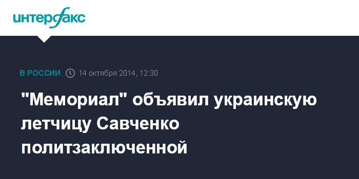 Москва. 14 октября. INTERFAX.RU - Правозащитный центр "Мемориал" считает, что украинская летчица Надежда Савченко, арестованная в России по обвинению в пособничестве убийству российских журналистов, является политзаключенной.