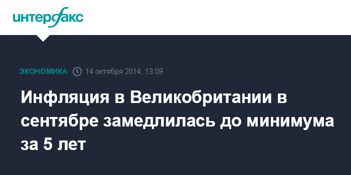 Москва. 14 октября. INTERFAX.RU - Потребительские цены в Великобритании в сентябре 2014 года выросли на 1,2% в годовом выражении, минимальными темпами с сентября 2009 года, после повышения на 1,5% месяцем ранее, свидетельствуют данные Национального статистического управления (ONS) страны.