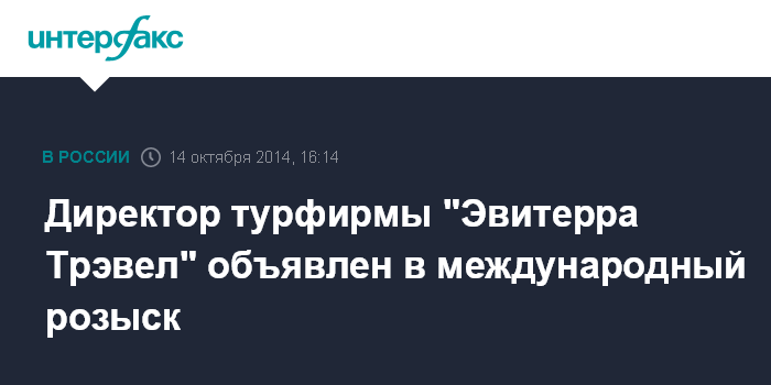 Директор турфирмы "Эвитерра Трэвел" объявлен в международный розыск