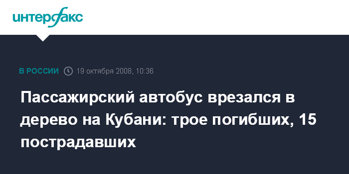 "Трое погибли, один из них - водитель автобуса. Пострадали 15 человек, четверо из них находятся в реанимации", - сообщил агентству "Интерфакс-Юг" представитель пресс-службы ЦУ МЧС РФ по Краснодарскому краю.