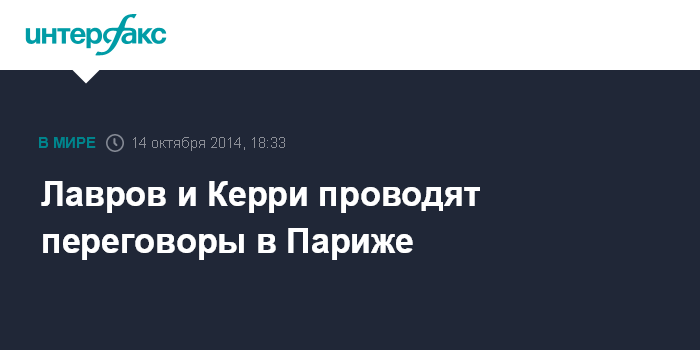 Москва. 14 октября. INTERFAX.RU - Глава МИД РФ Сергей Лавров встречается с госсекретарем США Джоном Керри в резиденции посла США в Париже.