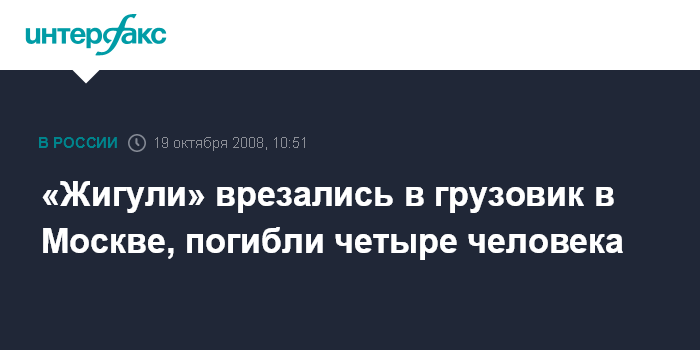 Москва. 19 октября. INTERFAX.RU - В Москве в дорожно-транспортном происшествии на МКАД погибло четыре человека.