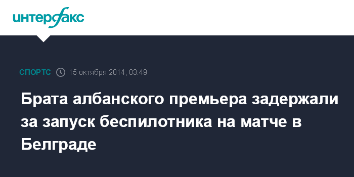 Матч между Сербией и Албанией в рамках отборочного турнира чемпионата Европы был остановлен на 42-й минуте. Игру остановили после того, как над полем пролетел беспилотник с флагом Албании. Защитник сербской сборной Стефан Митрович сорвал флаг, после чего между футболистами началась потасовка.