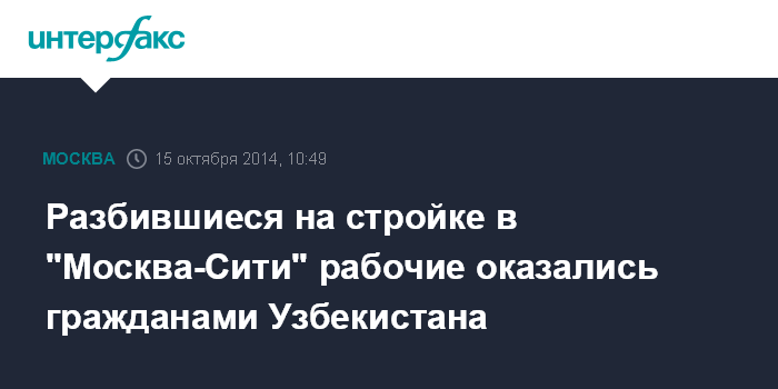 Разбившиеся на стройке в "Москва-Сити" рабочие оказались гражданами Узбекистана