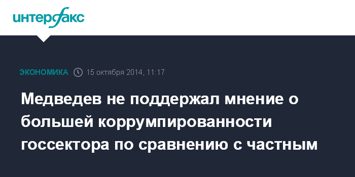 Медведев не поддержал мнение о большей коррумпированности госсектора по сравнению с частным
