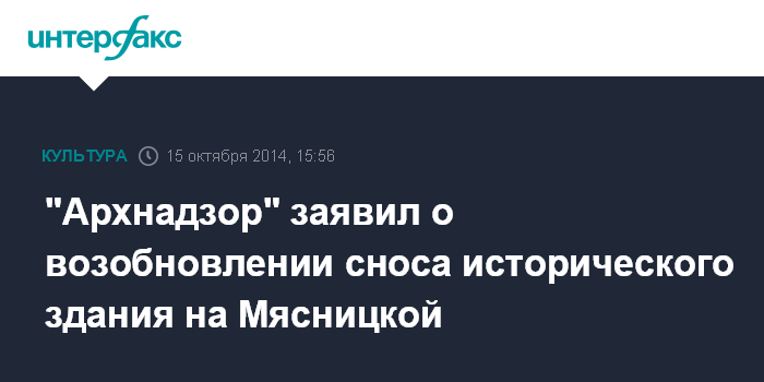 Москва. 15 октября. INTERFAX.RU - Градозащитное движение "Архнадзор" заявило о возобновлении сноса здания начала XX века на Мясницкой улице.