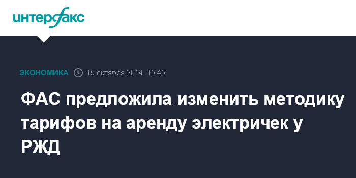 Москва. 15 октября. INTERFAX.RU - Федеральная антимонопольная служба (ФАС) РФ предлагает изменить методику формирования тарифов на аренду электричек у РЖД.