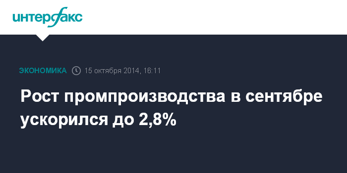 За январь-сентябрь 2014 года рост промпроизводства в РФ составил 1,5% по сравнению с аналогичным периодом 2013 года. В январе-сентябре 2013 года промпроизводство увеличилось на 0,1%, при этом в сентябре 2013 года промышленность выросла на 1,3%.