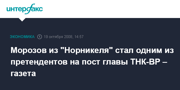 Морозов из "Норникеля" стал одним из претендентов на пост главы ТНК-ВР – газета