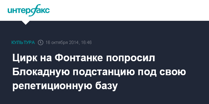 Москва. 16 октября. INTERFAX.RU - Большой Санкт-Петербургский государственный цирк на Фонтанке просит передать в свое управление здание Тяговой подстанции №11, известной как Блокадная.
