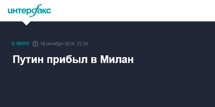 Москва. 16 октября. INTERFAX.RU - Президент РФ Владимир Путин прибыл в Милан, где примет участие в саммите форума "Азия-Европа" и обсуждении ситуации на Украине в многостороннем формате - с лидерами ЕС и президентом Петром Порошенко.
