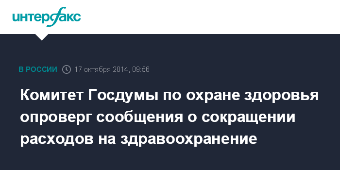Москва. 17 октября. INTERFAX.RU - В профильном комитете Госдумы опровергли сообщения о том, что государство намерено сократить расходы на здравоохранение.