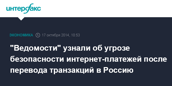"Ведомости" узнали об угрозе безопасности интернет-платежей после перевода транзакций в Россию