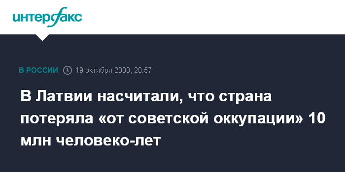 Рига. 19 октября. ИНТЕРФАКС/BNS - Латвийская комиссия по подсчету ущерба, причиненного Латвии "коммунистическим оккупационным режимом", подсчитала "прямые демографические потери от советской оккупации".