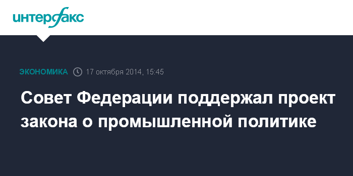 Совет Федерации поддержал проект закона о промышленной политике
