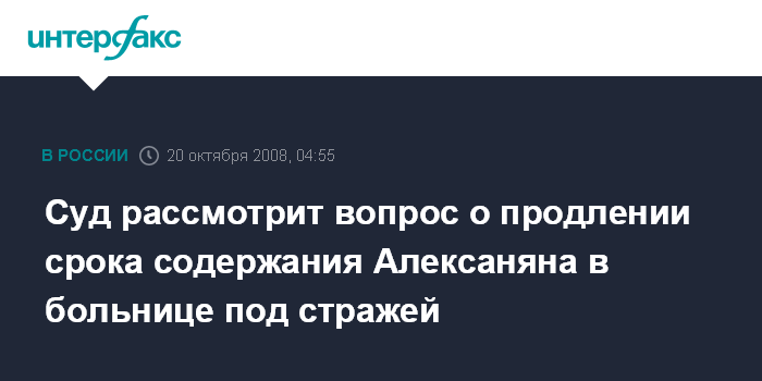 Суд рассмотрит вопрос о продлении срока содержания Алексаняна в больнице под стражей