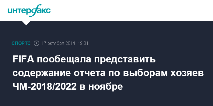 FIFA пообещала представить содержание отчета по выборам хозяев ЧМ-2018/2022 в ноябре