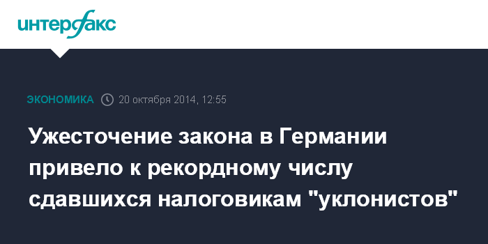Согласно данным, полученным Welt am Sonntag от министерств финансов всех 16 федеральных земель, с начала 2014 года явку с повинной написали 31 тыс. 927 лиц, ранее уклонявшихся от уплаты налогов. Таким образом, их число уже превысило предыдущий рекорд, установленный в 2013 году, когда в налоговые службы добровольно обратились около 24 тыс. недобросовестных налогоплательщиков.