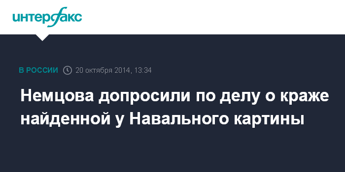 Москва. 20 октября. INTERFAX.RU - Следователи допросили сопредседателя партии РПР-Парнас Бориса Немцова в рамках расследования дела о краже картины Сергея Сотова "Хороший и плохой человек", которая была изъята при обыске в квартире оппозиционера Алексея Навального.